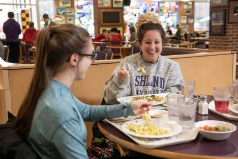 Present your Eagle Card when entering the student dining hall and your meal will be deducted from your meal-plan account. Students can also use a meal swipe to eat at any of our retail locations for a value of $8.50 per transaction. Locations include Eagles' Nest, Tuffy's Smoothie Bar, Lyceum Café, Catering, Concessions, and Conard Café (located on the Mansfield College of Nursing and Health Sciences Campus).