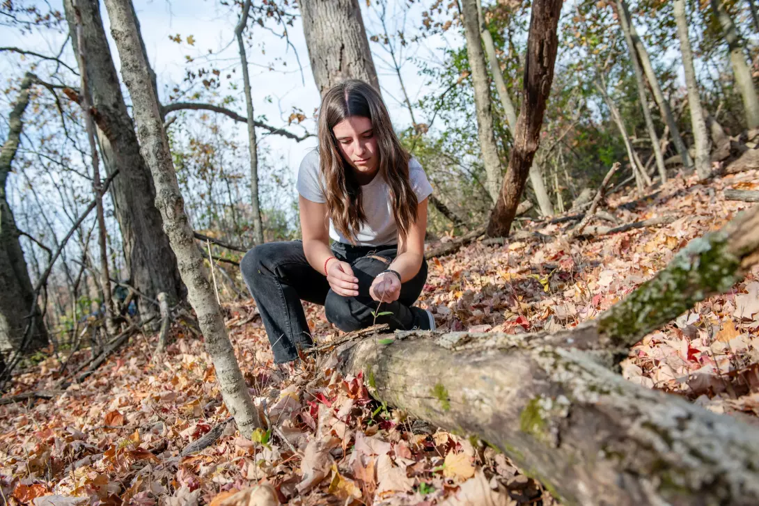 As Stephanie Pflaum returned from scouting out the next spot for a deer exclosure at one of Ashland University’s nature preserves, she asked if anyone saw a lady bug in her hair.