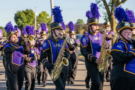 Ashland University’s Eagle Marching Band consists of 65 students, plus a color guard and featured twirlers. The group performs for all home games and travels to marching exhibitions throughout Ohio. One of the most active organizations on campus, the band has come to represent the best in musical presentation and exciting movement within a contemporary style.