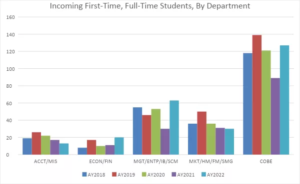 Incoming First-Time, Full-Time Freshmen by Department and Graduation Rates (5-year) by Major Department
