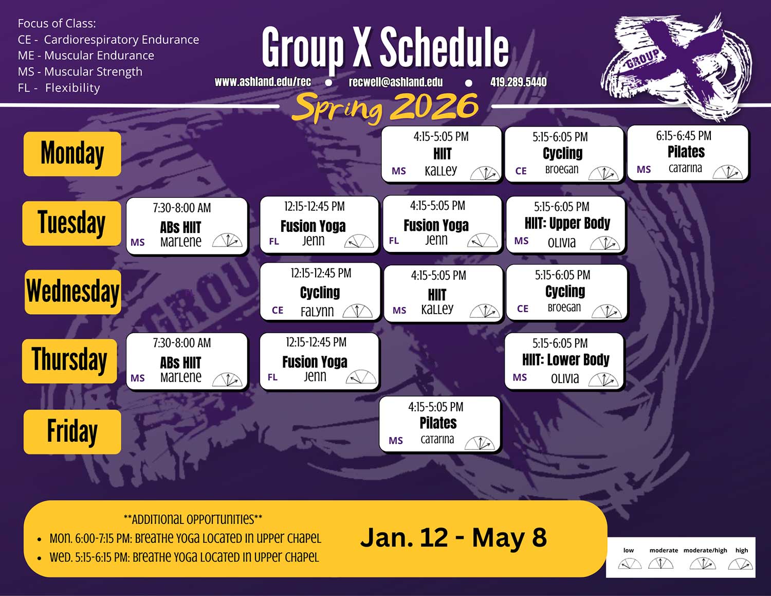 - Group X offers approximately 15-20 group exercise classes each semester that are attended by over 2,500 participants annually.