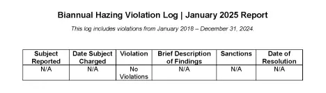 - The date the subject was charged with a violation of university policy/law regarding hazing and date the matter was resolved