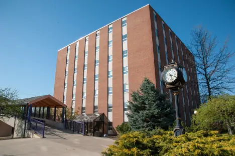 One of two first-year student residence halls, Kem Hall has 6 floors, each of which has a laundry room for students’ convenience and a lounge area for relaxing or hanging out with friends. Located at the corner of Jefferson Street and Claremont Avenue, Kem Hall is next to the John C. Myers Convocation Center and the pedestrian bridge to the Hawkins-Conard Student Center, and close to the Football Stadium. For more details about Kem, see the First-Year Residence Halls Chart.