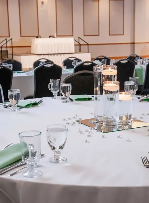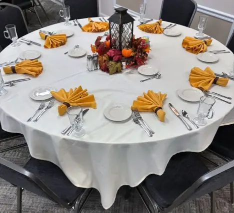 Our house-standard linen includes a variety of colors and is charged per tablecloth and per napkin. Our upscale specialty linen offers a larger variety of colors, fabrics, lengths, materials, chair covers and sashes. Contact the Sales and Marketing Office for pricing.