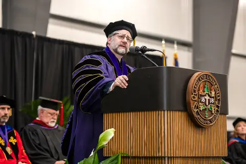 Ashland mayor Matt Miller details five “principles for better living” to new AU graduates