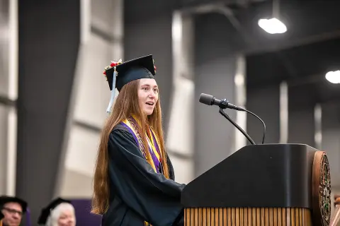 As co-valedictorian of the Fall 2024 graduates, Aumend was one of six students recognized individually. Nick Conner, an interdisciplinary major from Rushville, Missouri, and Erica Samples, who majored in biology and is from Lodi, Ohio, were co-valedictorians of the Spring 2025 graduates, while Drew Lind, an accounting major from Bellville, Ohio, was the other valedictorian from Fall 2024. Kenzie McConnell, an exercise science major from Circleville, Ohio, and John Rogus, a communication major from Mesa, Arizona, were the salutatorians from Spring 2025 and Fall 2024, respectively.