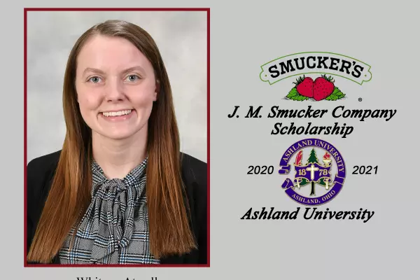 ASHLAND, Ohio – Whitney Atwell, an Ashland University student from Mansfield, was named The J.M. Smucker Co. Scholarship award winner for the academic year 2020-2021 at the recent virtual AU Student Institute of Management Accountants meeting.
