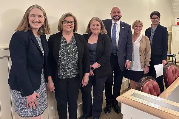 Lisa Vernon-Dotson, Ph.D. (pictured third from left), dean of the Dwight Schar College of Education, has headed the effort to update the content in AU’s education courses and was among a small group of leaders who testified in front of the Ohio House Higher Education Committee in late May. Lawmakers wanted to hear from colleges and universities that were aligned with the new state literacy policy ahead of the January 2025 deadline.