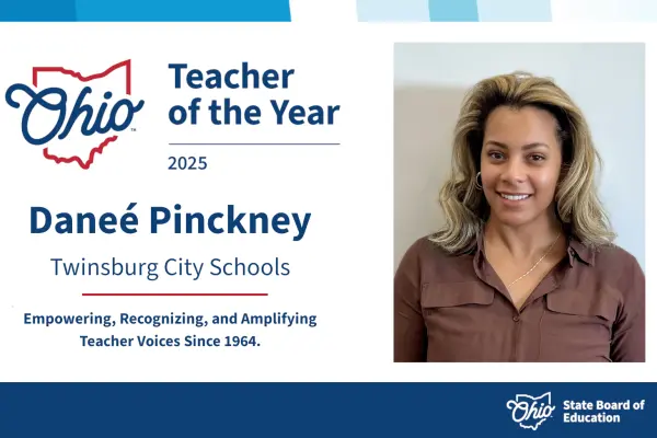 ASHLAND, Ohio – Daneé Pinckney, an educator in the Twinsburg City School District who earned a master’s of education degree in curriculum and instruction from Ashland University in 2019, was named the 2025 Ohio Teacher of the Year by the State Board of Education of Ohio.