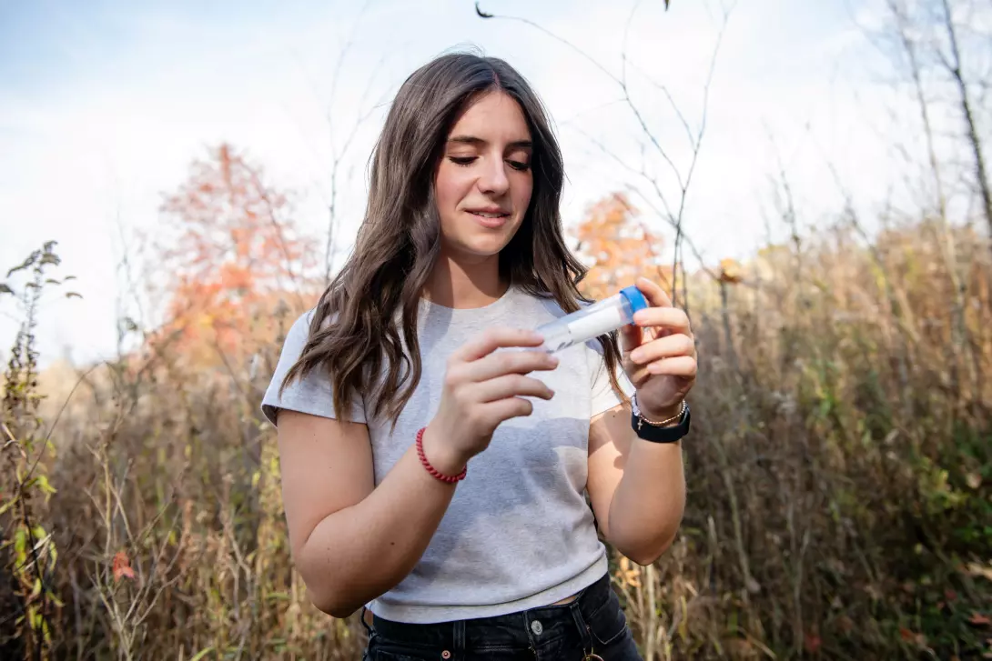 As Stephanie Pflaum returned from scouting out the next spot for a deer exclosure at one of Ashland University’s nature preserves, she asked if anyone saw a lady bug in her hair.