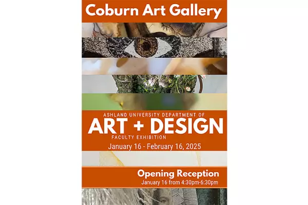 ASHLAND, Ohio – The Coburn Gallery at Ashland University will be hosting an exhibition featuring works by faculty in the AU Department of Art + Design that runs Thursday, Jan. 16, through Sunday, Feb. 16. There will be an opening reception on Thursday, Jan. 16, from 4:30-6:30 p.m. Gallery admission is free and open to the public.