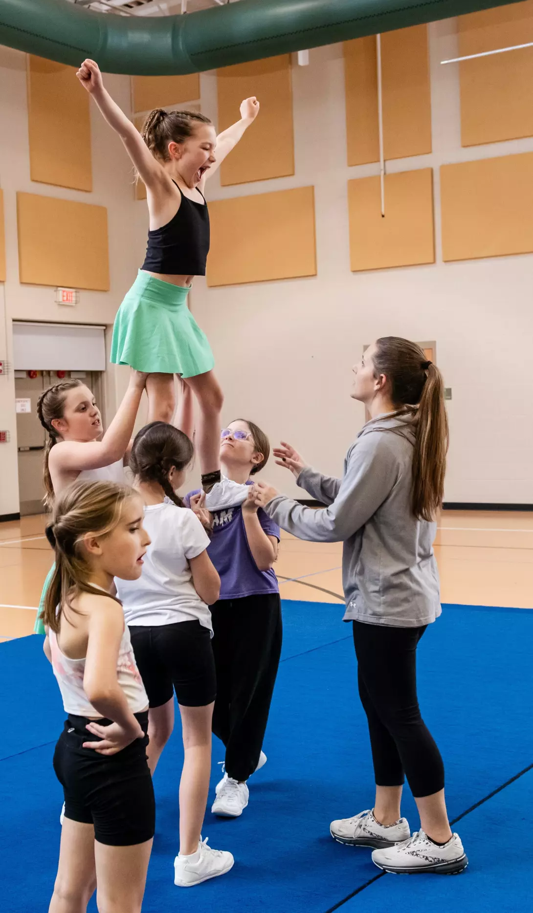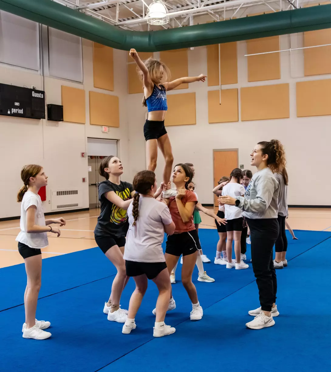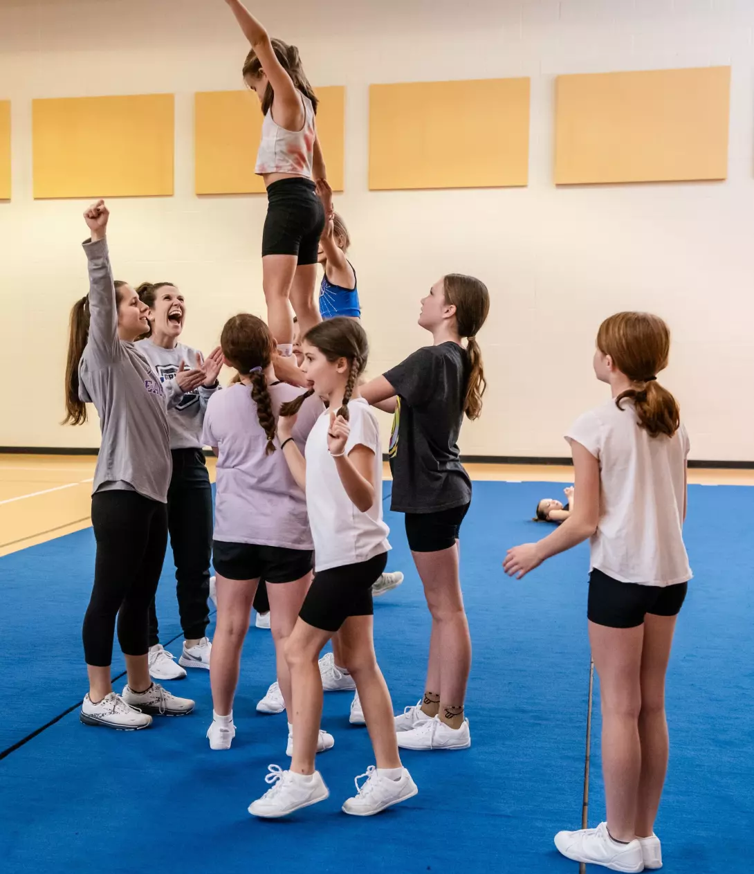Some of the girls have a little cheerleading experience, but no previous STUNT participation. All girls ages 8-14 are welcome to join Club STUNT whether or not they have experience in cheer, dance or gymnastics.