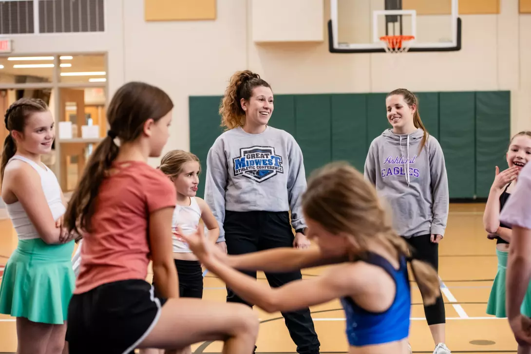 Ashland University graduates Shila (Hartzler, ’23) Shreve and Joy (Boone, ’19) Downing appear to be a perfect pairing as co-coaches for the Ashland Salvation Army Kroc Center’s new Club STUNT program for girls.