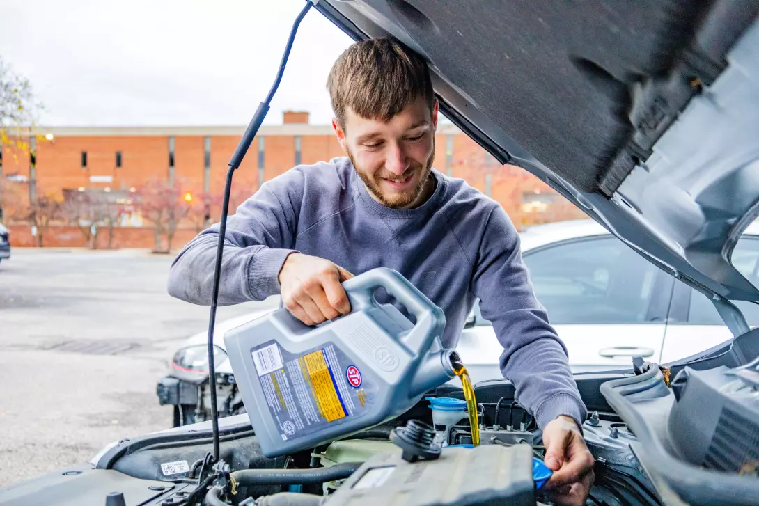 Not only does he do basic vehicle repairs and service, but the music major also works on motorcycles, race cars and planes.