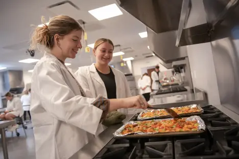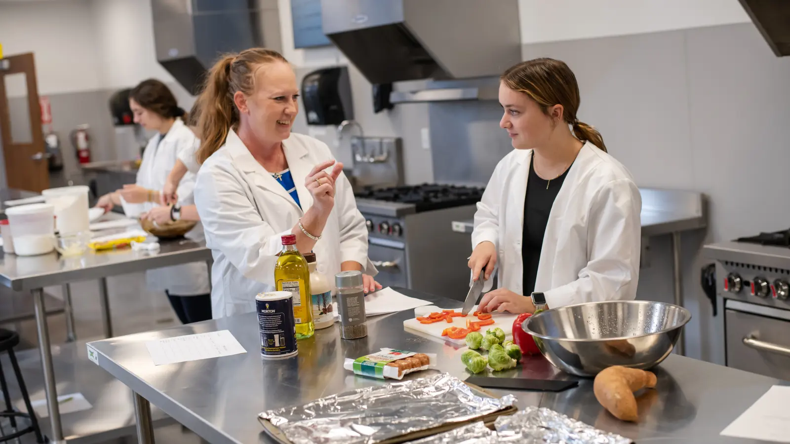students cooking in dietetics food lab