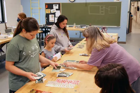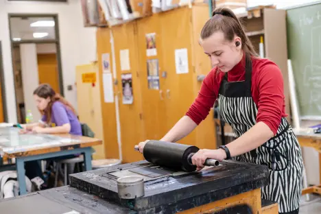 Printmaking student preparing a print plate