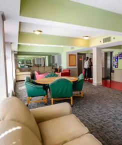 Clark Hall is an all-female residence hall and home to the university’s sorority suites. It features five floors, laundry rooms on four of those floors, a remodeled full kitchen on the first floor, and lounges with televisions on each floor—creating spaces both for socializing and study. Clark Hall’s location behind Kilhefner Hall and near the Archer Library offers access to academic and recreational facilities.
