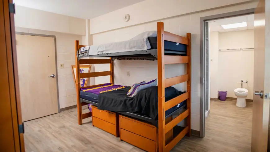 Clayton Hall stands out with eight fully renovated floors, each featuring in-suite bathrooms and air-conditioning throughout. Study rooms on every floor and a basement lounge with a kitchen add to its appeal. Located on King Road, Clayton Hall sits across from the Recreation Center and intramural fields, placing residents minutes from campus activity.