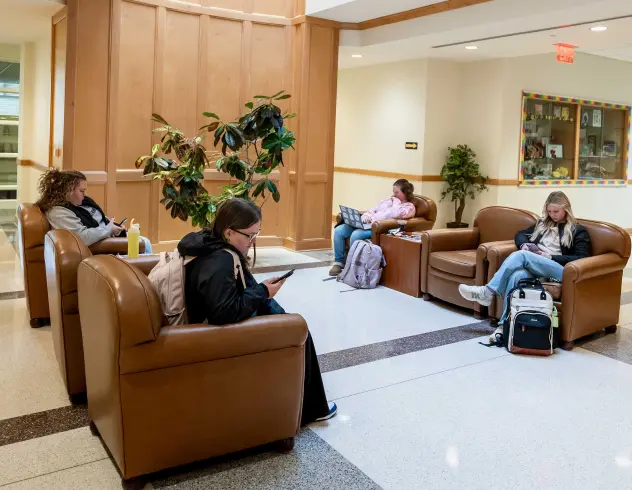 A highlight of the building is the Early Childhood Education Sensory Lab, where students explore the design of sensory-rich environments that support children’s development and inclusive education. The Ronk Lecture Hall provides a modern setting for guest speakers, large-group instruction and campuswide educational events.