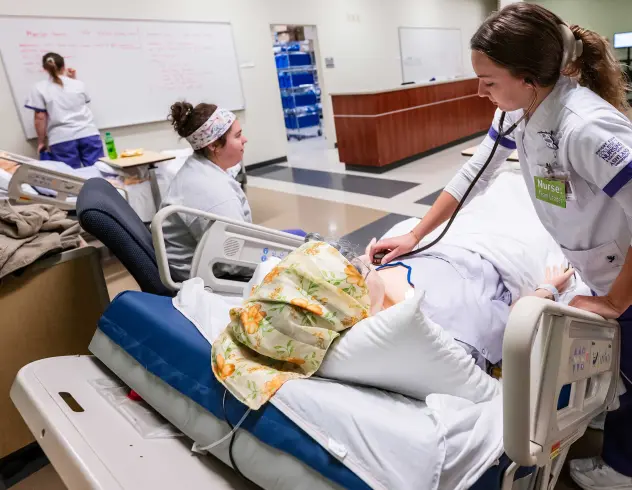 Ashland University’s College of Nursing & Health Sciences provides students with modern, hands-on learning environments designed to replicate real-world healthcare settings. The Dwight Schar College of Nursing building features a range of advanced simulation labs, including the Health Foundations Lab, Adult Health Lab, Complex Health Lab, OB Lab, Pediatric Lab, Community Health Lab, Intensive Care/Advanced Care Lab and fully equipped examination rooms. These spaces allow students to practice clinical skills, patient care and emergency procedures in a controlled, realistic setting.