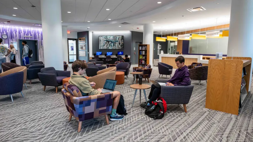 Study areas are available across campus to fit every learning style. In the Student Center, students can find the Commuter Lounge, Common Ground Study Lounge and Piano Lounge, each offering comfortable, quiet spaces for studying, group projects or simply recharging between classes.