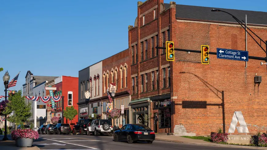 Historic downtown Ashland centers on Main Street, a walkable corridor of restored brick buildings that house independent shops, restaurants and services. The streetscape blends small-town charm with year-round community events and seasonal displays. Listed on the National Register of Historic Places, downtown Ashland showcases architectural character and local history around every corner.