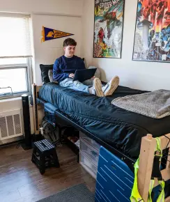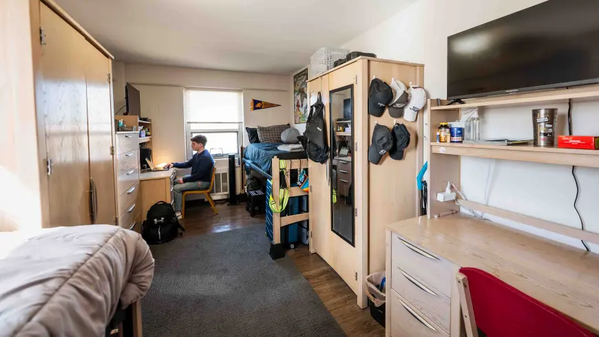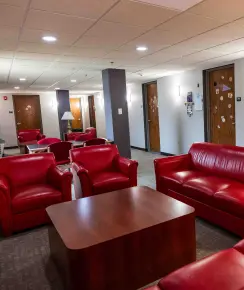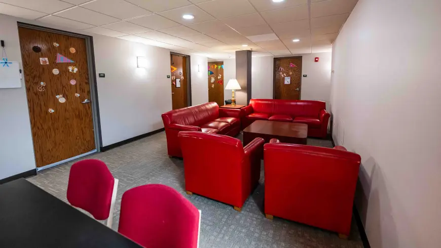 Kem Hall serves incoming first-year students. Located at the corner of Jefferson Street and Claremont Avenue, it features single, double and triple rooms and was recently renovated to offer a modern first-year experience. Kem Hall West facing view 2nd floor lobby 2nd floor lobby Dorm room Dorm room Bathroom Dorm room 2nd Floor lounge area 2nd floor lounge area Dorm room Dorm room Dorm room Dorm room First floor main lobby and lounge First floor main lobby and lounge More Like This Student Life Community on Campus Student Life Recreation Center Student Life On-Campus Dining Student Life Living on Campus Return to Tour Contact Information Office of Admissions Gill Welcome Center enrollme@ashland.edu 419-289-5052
