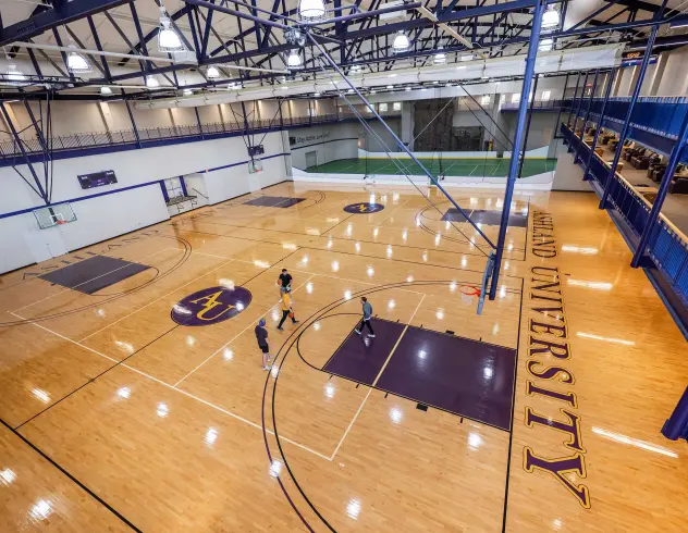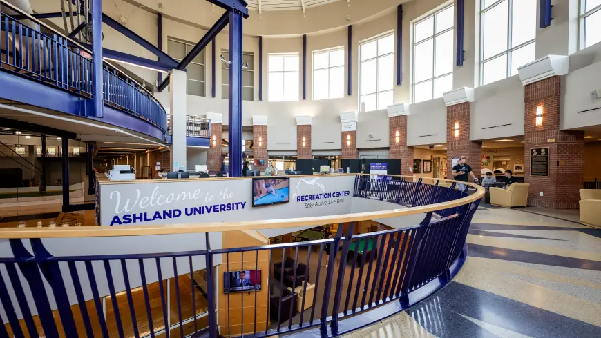 The Ashland University Recreation Center is a stand-alone facility designed exclusively for students—separate from varsity athletics, except for the shared natatorium. Nearly all full-time undergraduate students visit throughout the year, making it one of the most popular spots on campus.