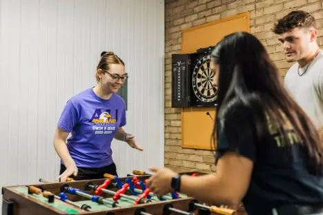 Common areas within the USA House provide opportunities for both relaxation and entertainment. With new furniture, streaming-equipped TVs, and engaging activities like pool, foosball and cornhole, you’ll have plenty of ways to unwind and connect with your fellow residents. The full kitchen and laundry room cater to your everyday needs.